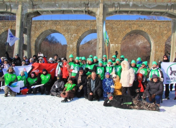 На льду Байкала прошел парад знамен всех команд, а также традиционный флешмоб: участники выстроились в надпись "Год нерпы". Организатором ледового перехода выступило Иркутское региональное отделение Всероссийского общества охраны природы.