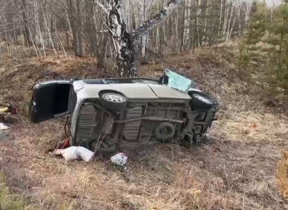 По предварительным данным, за рулём автомобиля Toyota Voxy находился 41-летний мужчина, который не справился с управлением. Машина съехала с дороги и перевернулась.