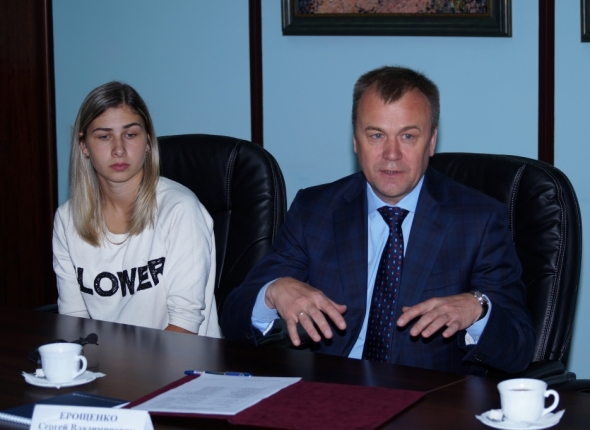 Сергей Ерощенко встретился с волейболистками "Ангары". Фото: Автор фото: Владислав Костин, ИА IrkutskMedia