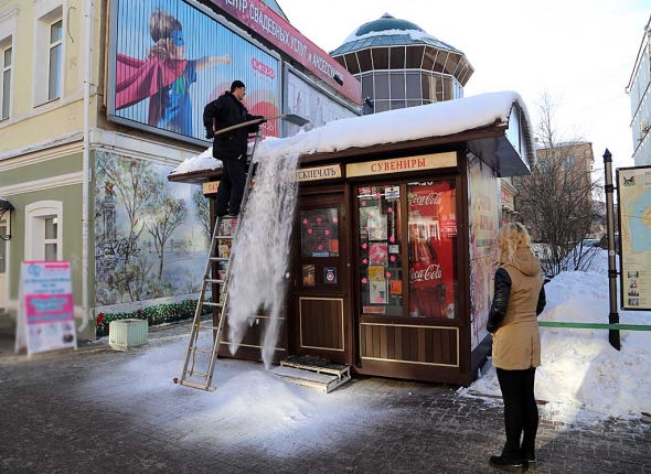IrkutskMedia, 8 февраля 2016. Оледенелые крыши домов угрожают жизни и здоровью жителей Иркутска из-за теплой погоды, установившейся в областном центре. В результате на крышах многих домов появились большие сосульки, которые вместе с нависающими снежными массивами уже представляют непосредственную угрозу горожанам. Впрочем, на некоторых зданиях в центре города уже началась работа по очистке крыш, что создает временные неудобства для перемещения по тротуарам. Фоторепортаж с улиц столицы Приангарья представляет своим читателям ИА IrkutskMedia.