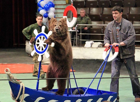 IrkutskMedia, 18 февраля 2016. Годовалая медведица Марта сегодня, 18 февраля, впервые вышла на арену после операции на глаза. За дрессированным животным продолжают наблюдать ветеринары и офтальмологи МНТК, ей несколько раз в день капают в глаза различные лекарства.