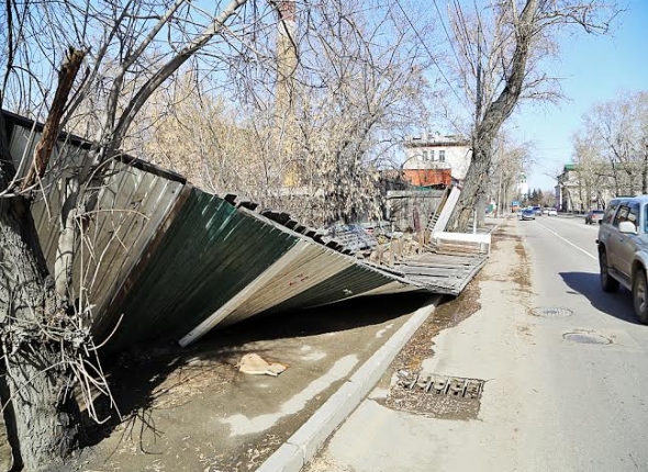 Забор упал на улице Сурикова . Фото: Фото: Оленникова Мария, IrkutskMedia