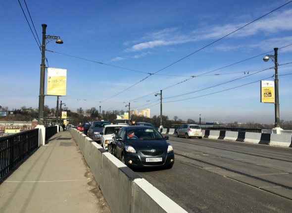 Напомним, столкновение двух иномарок, которое произошло утром 26 апреля, создало пробку на Глазковском мосту. Скорость движения составляла около 5 км/час.