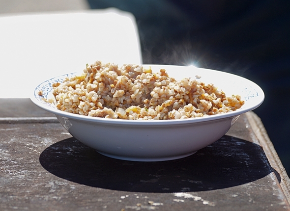 IrkutskMedia, 6 мая 2022. Песни времен Великой Отечественной снова звучат из радиоприемника, а по голубому экрану идут фильмы о фронтовиках. Это означает одно: наступил День Великой Победы. К ветеранам войны приезжают дети, внуки, правнуки и даже праправнуки, чтобы поблагодарить их за мирное небо над головой и приготовить полевую кашу, как тогда, в 41-м. Знаменитую гречку с тушенкой и луком можно сделать по рецепту, которым поделился с корр. ИА IrkutskMedia мастер-пожарный (спасатель) СПСЧ Иркутска Яков Бондаренко.