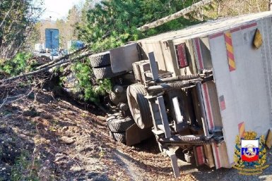 Фура улетела в кювет на трассе "Байкал" из-за отказа тормозов Водитель китайского грузовика не справился с управлением 29 сентября, 12:04
